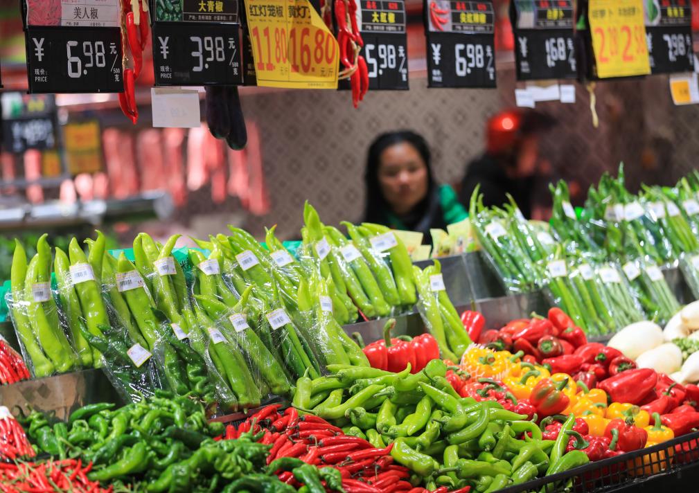 2024年3月9日,消費(fèi)者在貴州省從江縣一家超市選購蔬菜。(圖源:新華社)