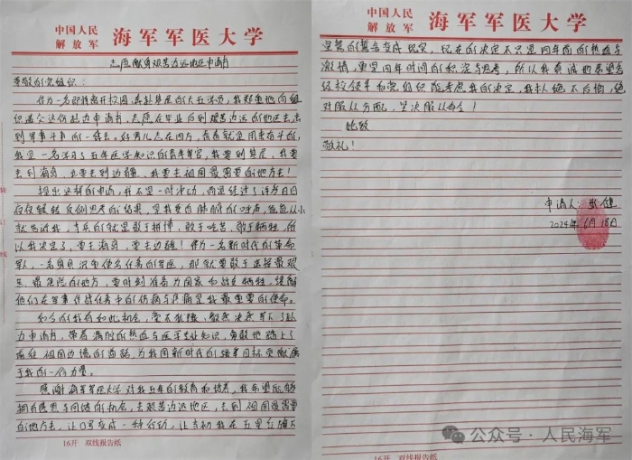 海軍軍醫(yī)大學(xué)“00后”雙胞胎學(xué)員,一同遞交戍邊申請(qǐng)書(shū)