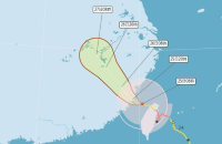 根據(jù)臺(tái)氣象部門觀測(cè),臺(tái)風(fēng)“格美”24日晚7時(shí)中心位在花蓮南南東方約30公里之處,以時(shí)速19轉(zhuǎn)12公里速度,向西北前進(jìn),近中心最大風(fēng)速每秒53米,相當(dāng)于16級(jí)風(fēng),瞬間最大陣風(fēng)每秒65米,相當(dāng)于17級(jí)風(fēng)以上,7級(jí)暴風(fēng)半徑250公里,10級(jí)暴風(fēng)半徑90公里。