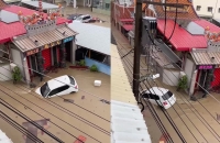 24日入夜起,位于臺灣西南部的高雄市風雨大作。民眾25日出門后,發(fā)現(xiàn)左營區(qū)、鼓山區(qū)、三民區(qū)、鹽埕區(qū)等地多路段淹水,感嘆“馬路變黃河”,出行困難,不少車子也被水淹沒。