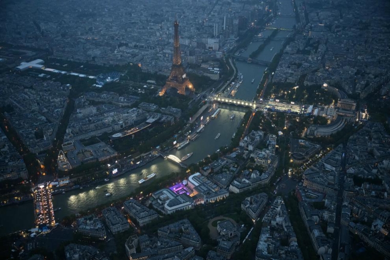 7月26日,第33屆夏季奧林匹克運(yùn)動(dòng)會(huì)開幕式在法國巴黎舉行。這是從直升機(jī)視角拍攝的開幕式現(xiàn)場。新華社發(fā)