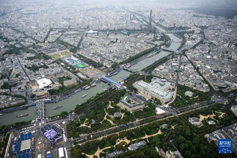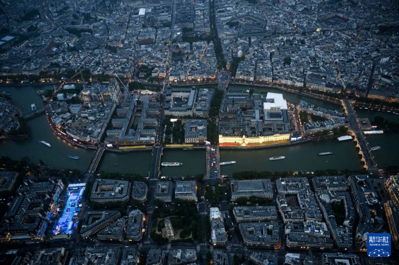 7月26日,第33屆夏季奧林匹克運動會開幕式在法國巴黎舉行。這是從直升機視角拍攝的巴黎城市景觀。新華社發(fā)(POOL照片/利昂內(nèi)爾·博納旺蒂爾)