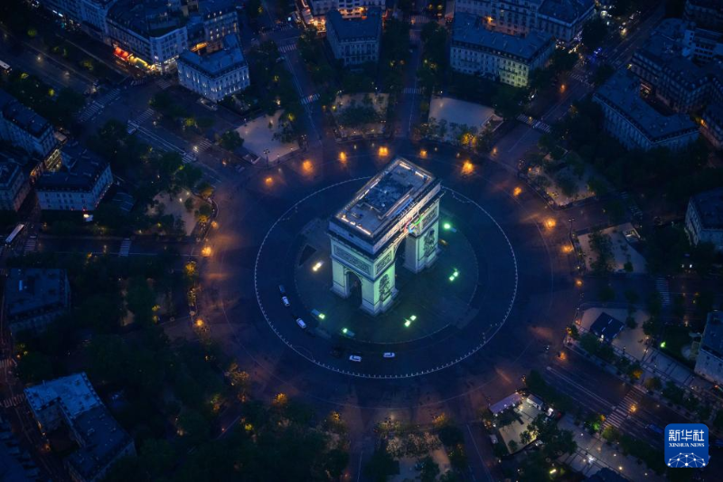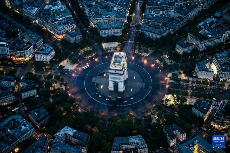 7月26日,第33屆夏季奧林匹克運動會開幕式在法國巴黎舉行。這是從直升機視角拍攝的凱旋門。新華社發(fā)(POOL照片/利昂內(nèi)爾·博納旺蒂爾)