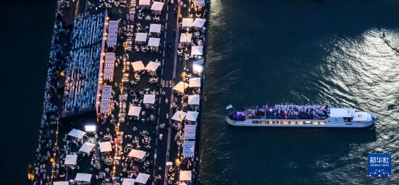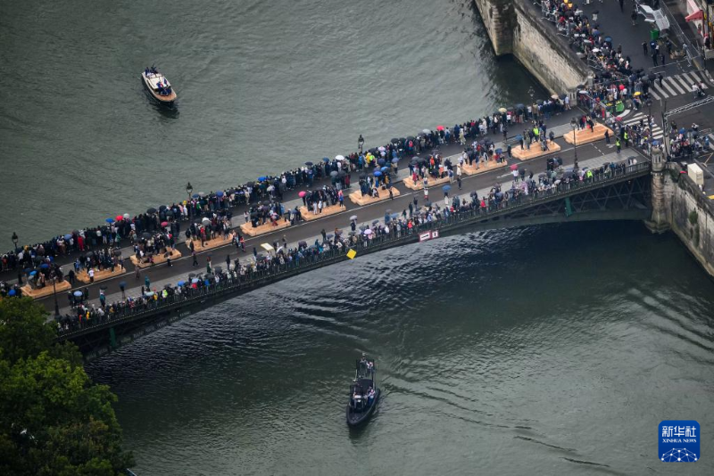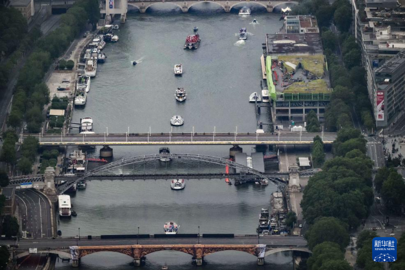 7月26日,第33屆夏季奧林匹克運動會開幕式在法國巴黎舉行。這是從直升機視角拍攝的塞納河。新華社發(fā)(POOL照片/利昂內(nèi)爾·博納旺蒂爾)