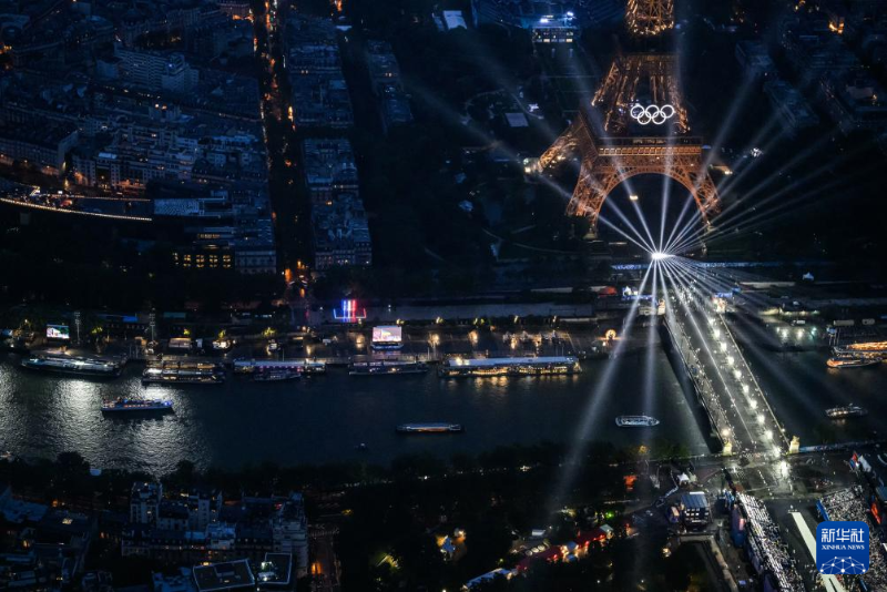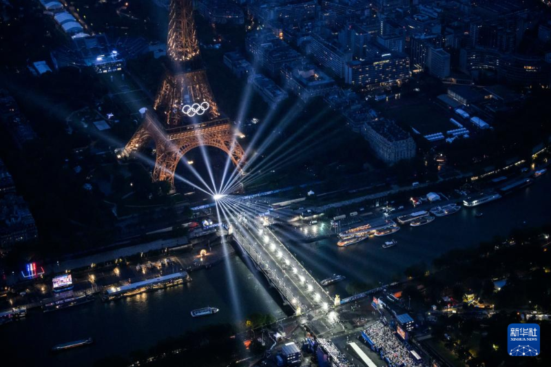 7月26日,第33屆夏季奧林匹克運動會開幕式在法國巴黎舉行。這是從直升機視角拍攝的埃菲爾鐵塔。新華社發(fā)(POOL照片/利昂內(nèi)爾·博納旺蒂爾)