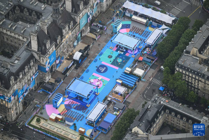 7月26日,第33屆夏季奧林匹克運動會開幕式在法國巴黎舉行。這是從直升機視角拍攝的巴黎市政廳。新華社發(fā)(POOL照片/利昂內(nèi)爾·博納旺蒂爾)