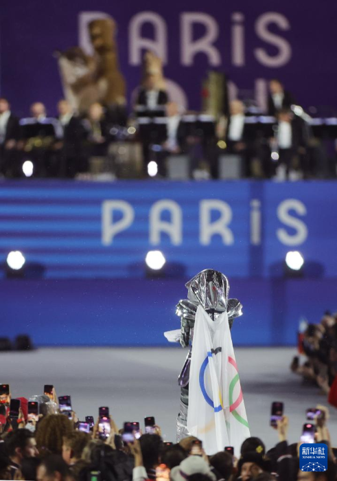 7月26日,演員手持國際奧委會旗幟入場。新華社記者 高靜 攝
