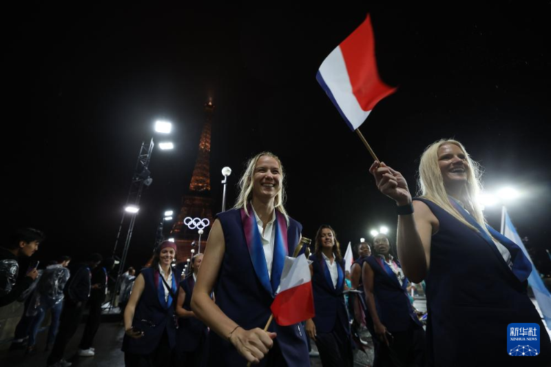 7月26日,法國體育代表團成員走向特羅卡德羅廣場。新華社記者 李明 攝