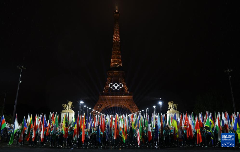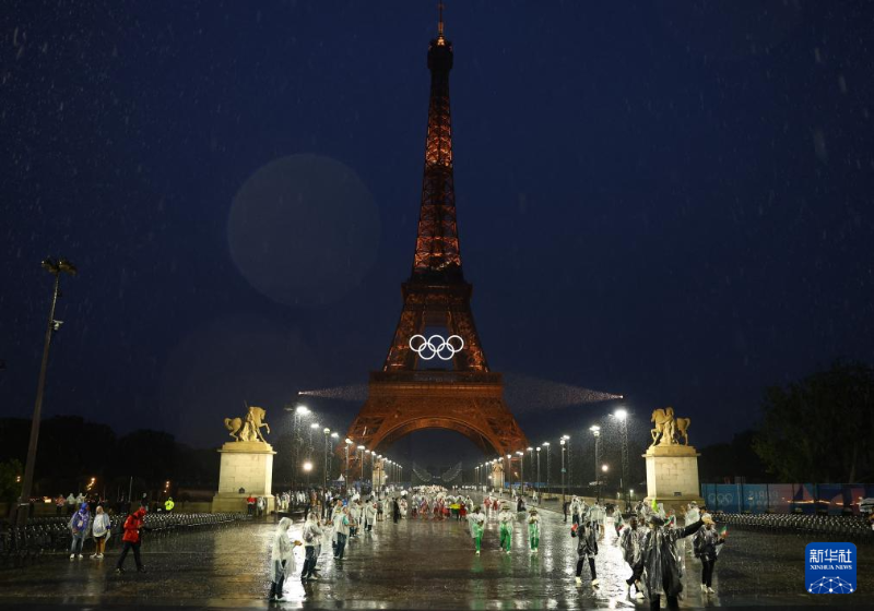 這是7月26日在巴黎奧運(yùn)會開幕式期間拍攝的埃菲爾鐵塔。新華社發(fā)(POOL照片/克洛達(dá)赫·基爾科因)