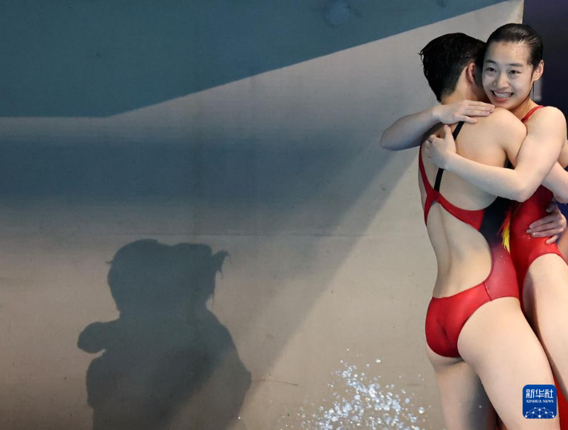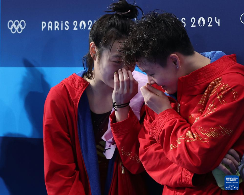 7月27日,中國選手昌雅妮(前)/陳藝文相擁慶祝。新華社記者 李明 攝