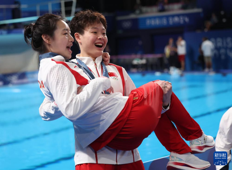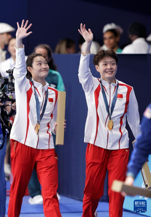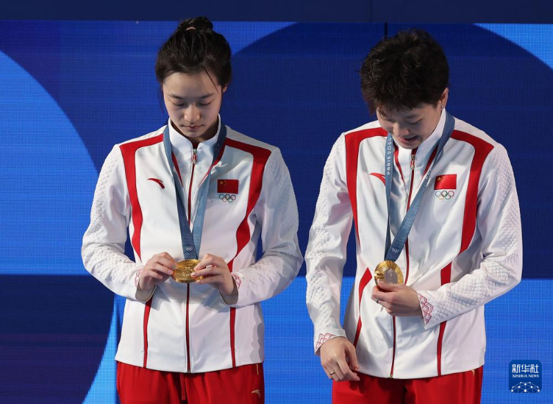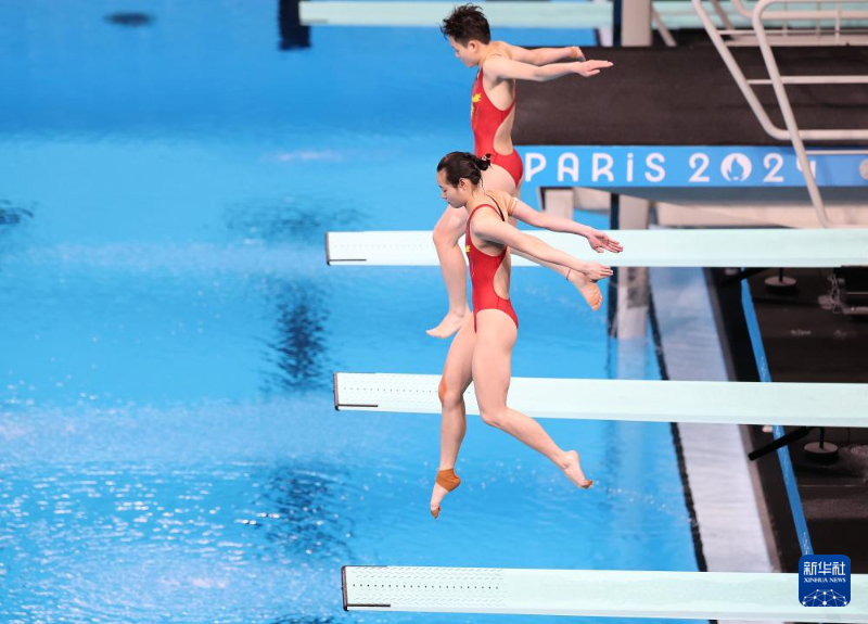 當(dāng)日,在巴黎奧運(yùn)會(huì)跳水女子雙人3米板決賽中,中國選手昌雅妮/陳藝文奪得金牌。