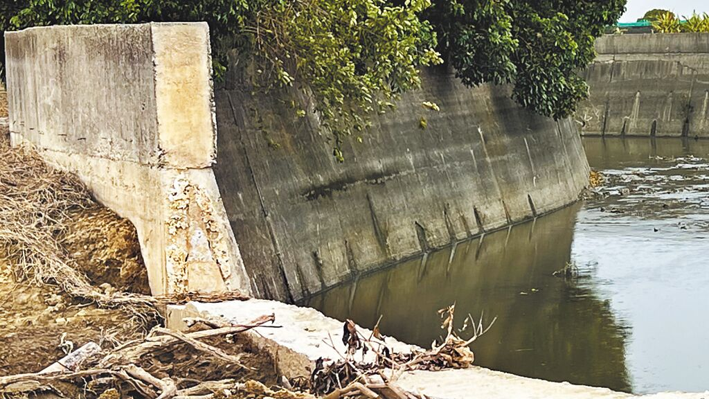 臺南市后壁區(qū)有農(nóng)民30日發(fā)現(xiàn)新的一處排水護(hù)岸出現(xiàn)大破口,且破口斷面未見任何鋼筋,被質(zhì)疑是“豆腐渣工程”。(張毓翎攝,臺灣“中時新聞網(wǎng)”)