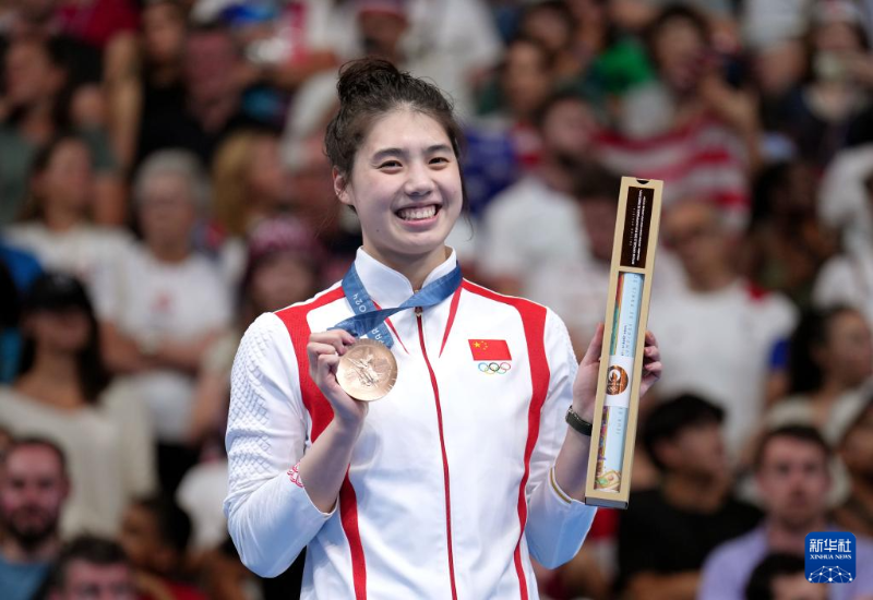 7月28日,季軍中國選手張雨霏在頒獎儀式上。新華社記者 杜宇 攝
