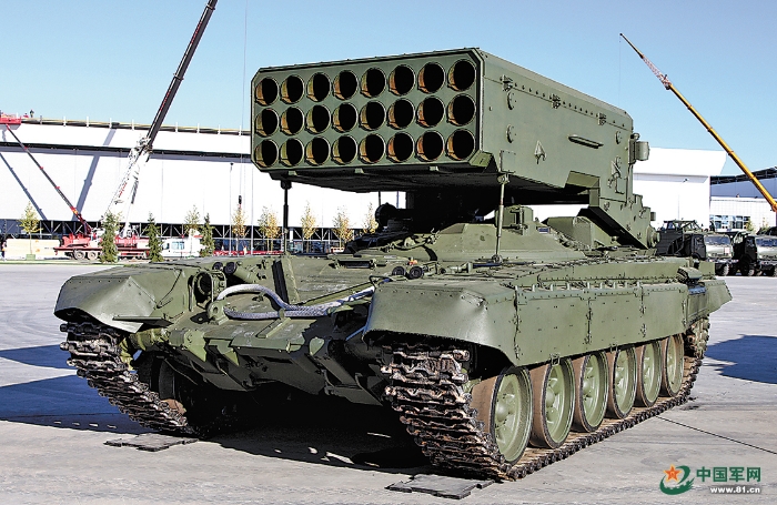 俄烏沖突中,BM-21“冰雹”、BM-27“颶風(fēng)”、BM-30“龍卷風(fēng)”、M270“鋼雨”、M142“海馬斯”等火箭炮先后現(xiàn)身,俄軍還使用了TOS-1A“日炙”噴火坦克,這種坦克本質(zhì)上也是多管火箭炮系統(tǒng),能發(fā)射攜帶溫壓彈頭的火箭彈。
