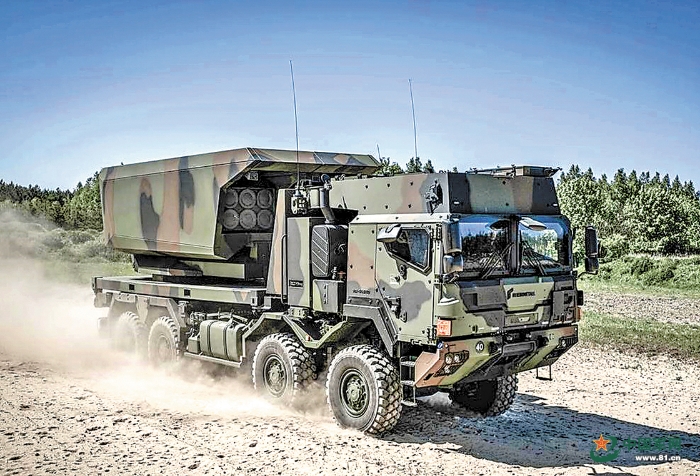 首先,更加重視戰(zhàn)場(chǎng)機(jī)動(dòng)能力。在第28屆歐洲國(guó)際防務(wù)展上,德美相關(guān)公司聯(lián)合研制的GMARS火箭炮,采用8×8卡車(chē)底盤(pán)。據(jù)稱(chēng),該火箭炮速度可以達(dá)到100千米/小時(shí)?!翱齑蚩斐贰蹦芰Γ瑢?duì)火箭炮來(lái)說(shuō)同樣重要。俄烏沖突中,M142“海馬斯”火箭炮可在幾秒鐘內(nèi)射出6枚火箭彈,然后快速撤離陣地。