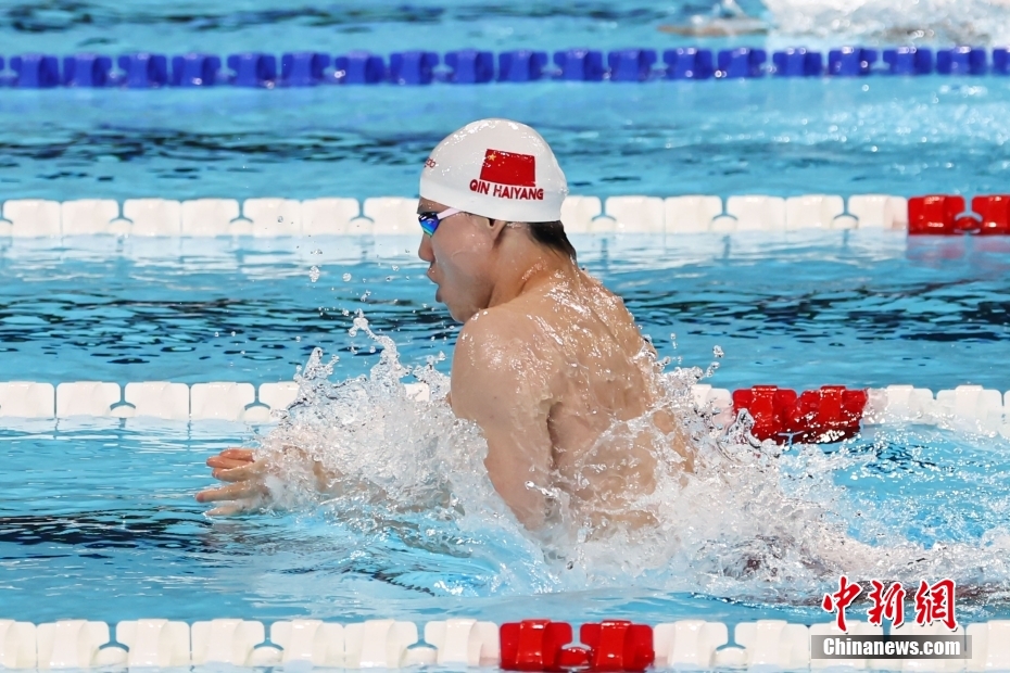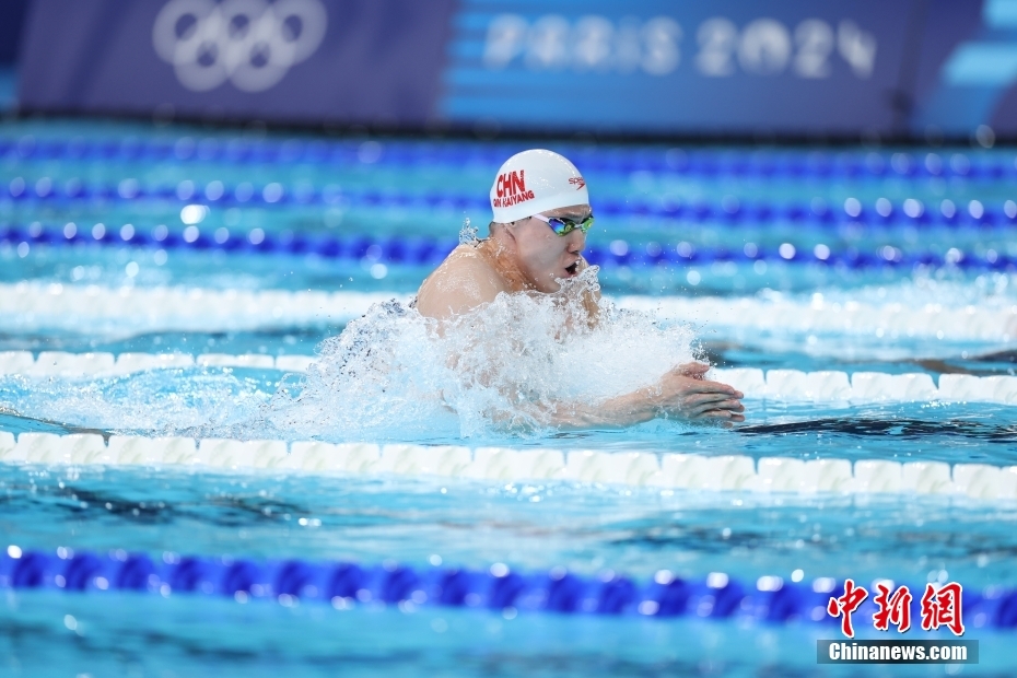 當(dāng)?shù)貢r間8月4日,在巴黎奧運會游泳項目男子4x100米混合泳接力決賽中,由徐嘉余、覃海洋、孫佳俊、潘展樂組成的中國隊奪得金牌。圖為覃海洋在比賽中。