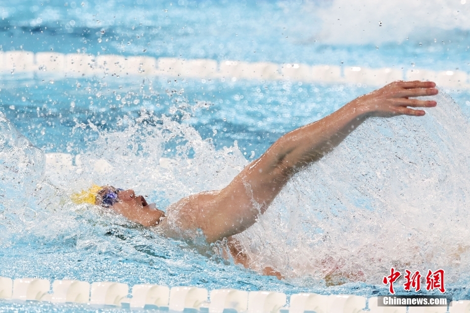 當(dāng)?shù)貢r間8月4日,在巴黎奧運會游泳項目男子4x100米混合泳接力決賽中,由徐嘉余、覃海洋、孫佳俊、潘展樂組成的中國隊奪得金牌。圖為潘展樂在比賽中。