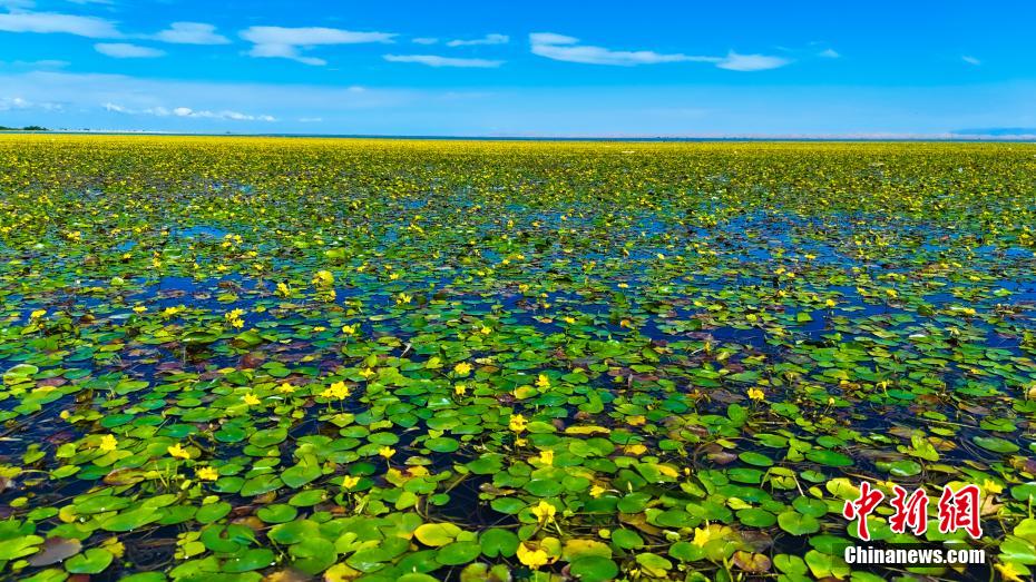 博斯騰湖碧波蕩漾,荇菜花爭(zhēng)相綻放。