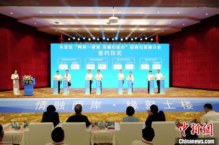 在開幕式后舉行的“兩岸一家親 發(fā)展心連心”永定區(qū)招商引資推介會上,現(xiàn)場共有8個項目進行簽約,總投資20.9億元人民幣,包含工業(yè)、農(nóng)業(yè)、文旅康養(yǎng)、產(chǎn)業(yè)平臺等項目,其中3個項目為臺商投資產(chǎn)業(yè)項目,1個項目為永定區(qū)打造的用于承載臺商來永定投資的平臺項目。