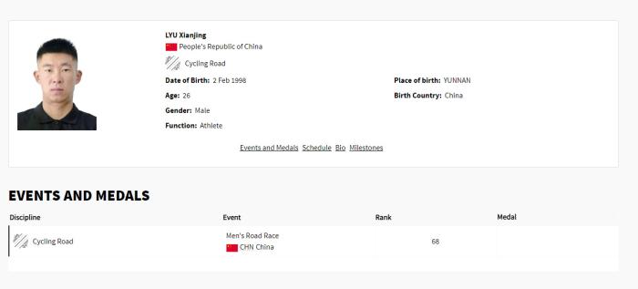 作為長(zhǎng)期被歐美選手壟斷的運(yùn)動(dòng)項(xiàng)目,公路自行車并不是中國代表團(tuán)的強(qiáng)項(xiàng)。本屆大賽,中國隊(duì)唯一一位參賽者呂先景在長(zhǎng)達(dá)273公里的賽道上騎行了6小時(shí)39分27秒,最終第68位沖過終點(diǎn)線。