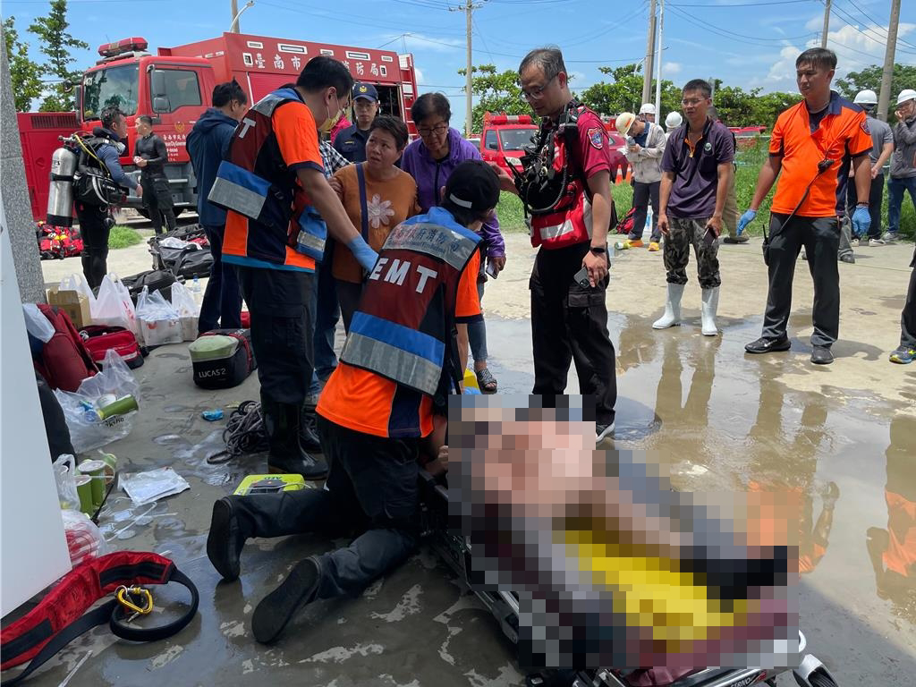 消防局于12時15分派遣潛水人員下水救援,至12時58分將溺水工人救出,但已無生命跡象;經(jīng)救護人員緊急處置,隨即將溺水工人送往永康奇美醫(yī)院,但仍因傷重不治。