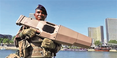 此外,法國軍方還在地面布置多種反無人機系統(tǒng)。一種是“米拉德”聯(lián)合反無人機系統(tǒng),能夠干擾、欺騙2500米范圍內(nèi)的小、微型無人機;一種是安裝在輕型機動車輛上的Helma-P激光反無人機系統(tǒng),能夠攔截1千米內(nèi)的無人機;最后一種是NerodMC2手持式反無人機裝置。法軍士兵攜帶這種手持式反無人機裝置在街頭巡邏,配合裝備12號霰彈槍的士兵,共同應(yīng)對低空小、微型無人機。