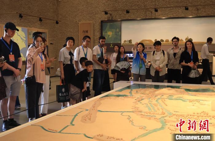8月14日,亞歐青年領(lǐng)導(dǎo)人交流營(yíng)活動(dòng)在浙江杭州舉行,來自47個(gè)國(guó)家的50余名青年代表走進(jìn)良渚博物院,感受五千年中華文明魅力。圖為亞歐青年參觀良渚古城沙盤。中新社記者 鮑夢(mèng)妮 攝