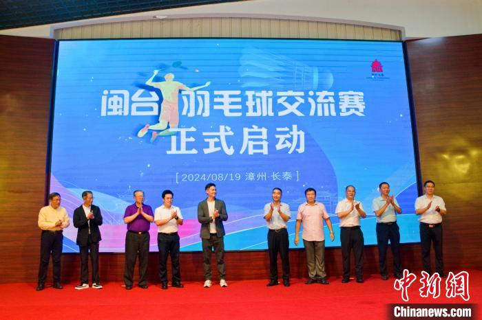 中新社福建長(zhǎng)泰8月19日電 (廖珍妹)閩臺(tái)羽毛球交流賽活動(dòng)19日在位于福建省漳州市長(zhǎng)泰區(qū)的連緣書(shū)畫(huà)院?jiǎn)?dòng)。來(lái)自臺(tái)北市、屏東縣的羽毛球選手及教練團(tuán)隊(duì)一行43人將在漳州開(kāi)啟為期7天的文化體育交流活動(dòng)。