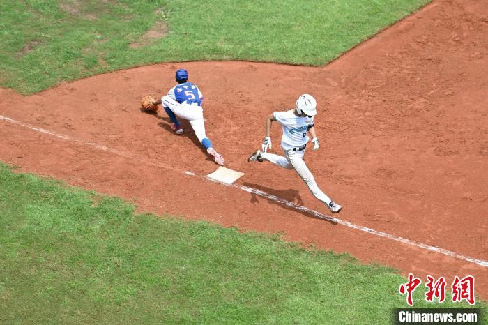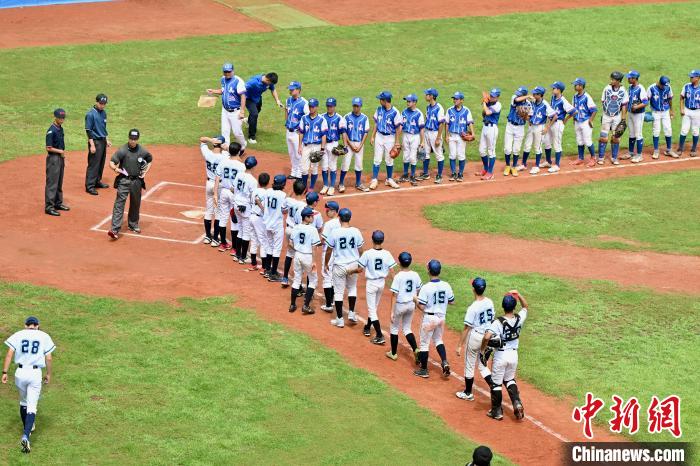 8月22日,第三屆大灣區(qū)臺港澳青少年棒球邀請賽在深圳中山公園棒球場開賽,來自臺灣、香港、澳門、東莞、廣州、中山及深圳共16支隊伍、近350余名運動員與教練員參加。賽事延續(xù)海峽兩岸學(xué)生棒球聯(lián)賽總決賽“棒棒的城市、棒棒的運動”主題,設(shè)置青年組、U15組、U12組及U10組四個組別賽事,吸引不同年齡階段的青少年選手參賽。圖為開幕賽在臺灣隊(藍)與香港隊(白)之間進行。中新社記者 陳文 攝