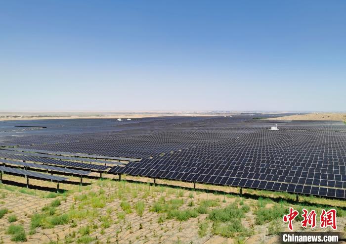在沙漠光伏資源高效利用方面,“塞上江南”也跑出“加速度”。在寧夏騰格里沙漠新能源基地,220余萬塊光伏板如龍鱗般依次排開,匯成一片“藍色海洋”。