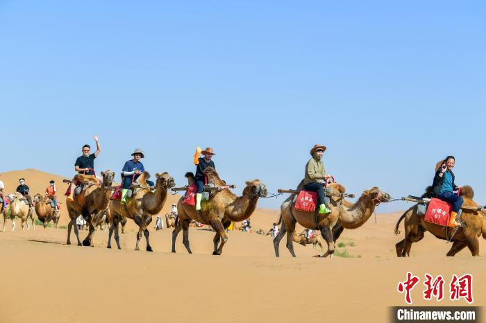 日前,“鑄牢共同體 中華一家親”主題宣傳“塞上江南寫新篇”集中采訪團走進寧夏中衛(wèi)市沙坡頭景區(qū)。圖為游客在景區(qū)騎駱駝。中新網記者 吳蓓蓓 攝