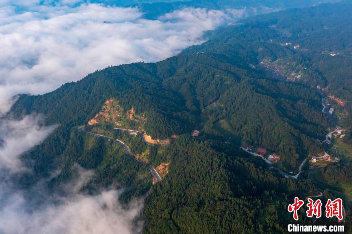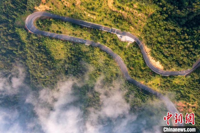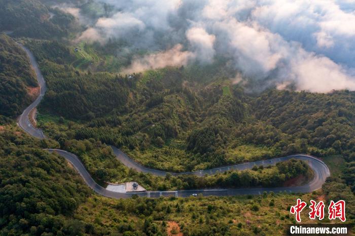 8月28日,貴州省黔東南苗族侗族自治州從江縣谷坪鄉(xiāng)四寨河口至谷坪公路銀下路段出現(xiàn)平流霧,村莊、山林、田園、公路在云霧中時(shí)隱時(shí)現(xiàn),好一幅鄉(xiāng)村生態(tài)美景畫(huà)卷。圖為航拍從江縣谷坪鄉(xiāng)的鄉(xiāng)村公路。吳德軍 攝