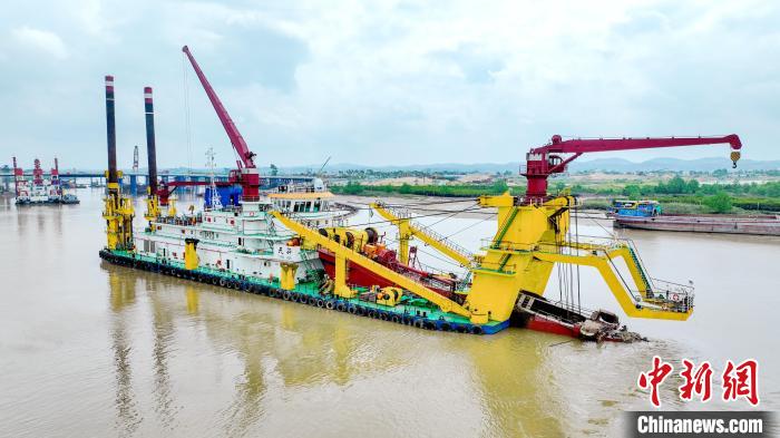 中新網(wǎng)欽州8月31日電(翟李強(qiáng) 楊陳 俞靖)眼下在廣西欽州,“世紀(jì)工程”平陸運(yùn)河項(xiàng)目施工現(xiàn)場(chǎng)如火如荼,運(yùn)河航道中,國(guó)之重器“天驊”船正日夜不停地開展疏浚作業(yè)。據(jù)了解,“天驊”船是目前進(jìn)入欽江內(nèi)河的最大施工船舶,也是國(guó)內(nèi)大型絞吸挖泥船首次在城區(qū)段施工的重大突破。