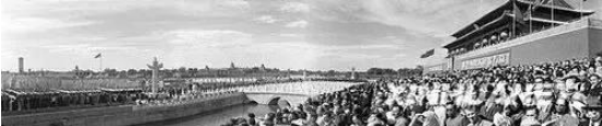 在燦爛陽(yáng)光照耀下,天安門(mén)廣場(chǎng)五彩繽紛。一萬(wàn)名工人以紅花作底、用黃花組成了“國(guó)慶”兩字。在它的東邊排列著準(zhǔn)備接受檢閱的中國(guó)人民解放軍部隊(duì)和參加節(jié)日游行的50萬(wàn)群眾隊(duì)伍。
