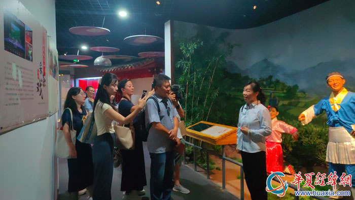 兩岸媒體人聽講解員演唱贛南采茶戲。(攝影:虞鷹)