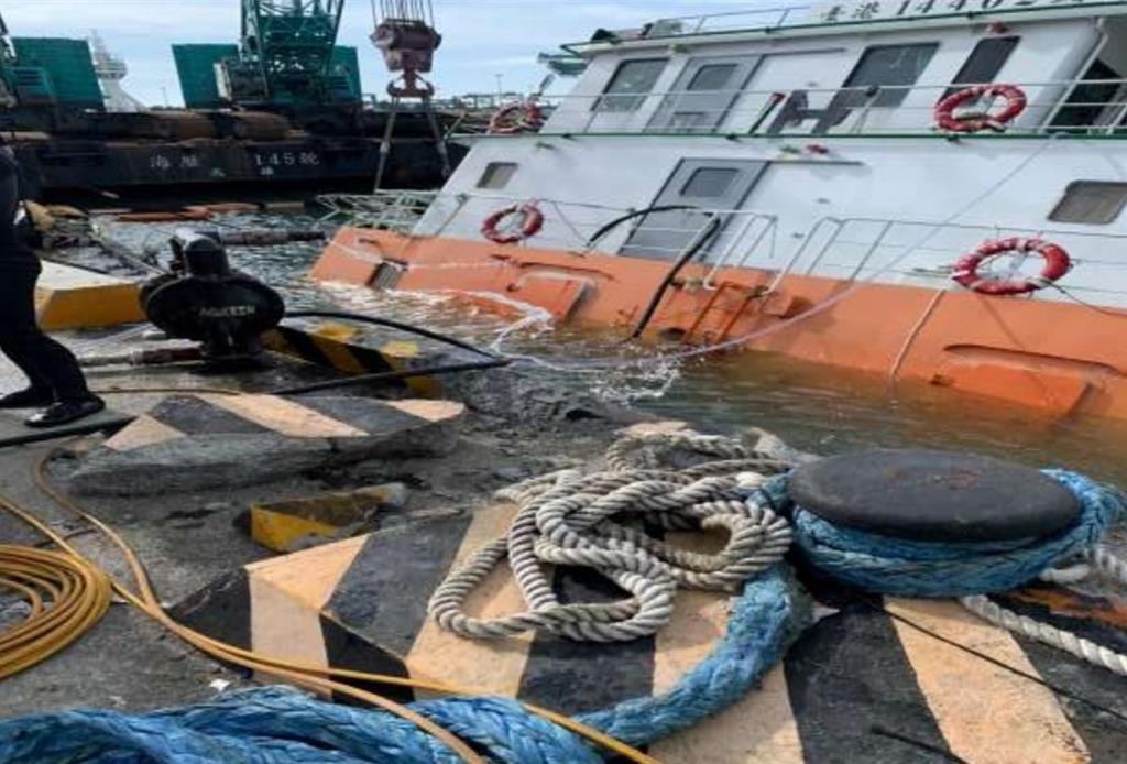 高雄港勤拖船被撞沉入海中。(臺灣“中時新聞網(wǎng)”)