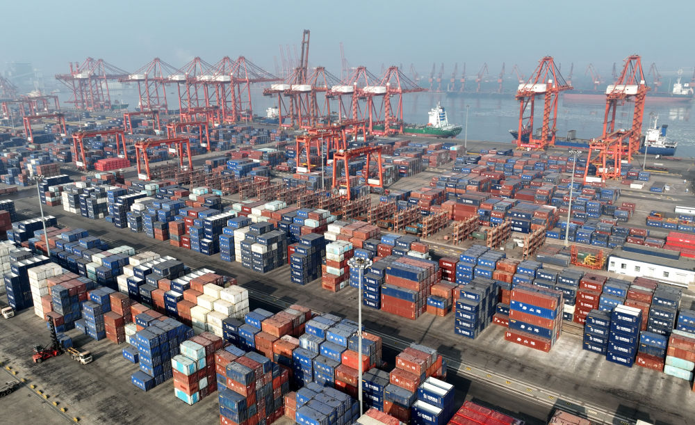 這是2024年2月7日拍攝的唐山港京唐港區(qū)集裝箱碼頭(無人機照片)。(圖源:新華社)