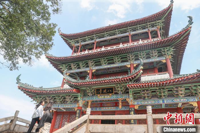 9月4日,“2024兩岸媒體陽明文化江西行”采訪團(tuán)一行來到被譽(yù)為“江南宋城”的江西贛州,先后到訪郁孤臺(tái)、宋代古城墻、福壽溝博物館、八境臺(tái)等地,沉浸式感知贛州深厚的歷史文化底蘊(yùn)。圖為兩岸媒體人在贛州郁孤臺(tái)參觀,郁孤臺(tái)因南宋著名詩(shī)人辛棄疾的一句“郁孤臺(tái)下清江水,中間多少行人淚”而聞名于世。中新社記者 劉力鑫 攝