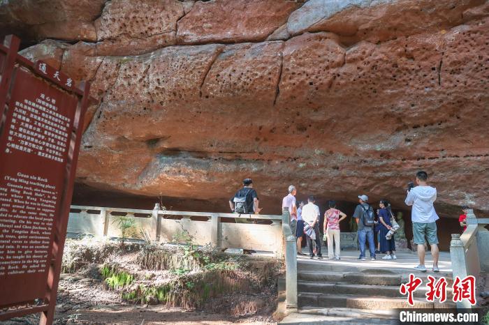 圖為9月1日,采訪團一行在贛州通天巖的王陽明講學處參觀,當年王陽明曾在此給其弟子陳九川、鄒守益講授他的“致良知”,要求學生強調自我修身。中新社記者 劉力鑫 攝