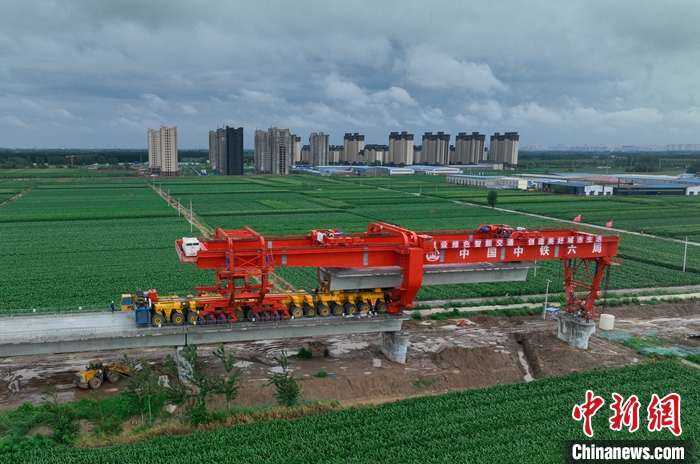 資料圖為今年7月25日雄商高鐵位于河北衡水的架梁現(xiàn)場。 中新社記者 賈天勇 攝