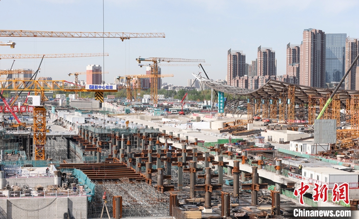 資料圖為今年4月16日北京城市副中心站建設(shè)現(xiàn)場。 中新社記者 賈天勇 攝