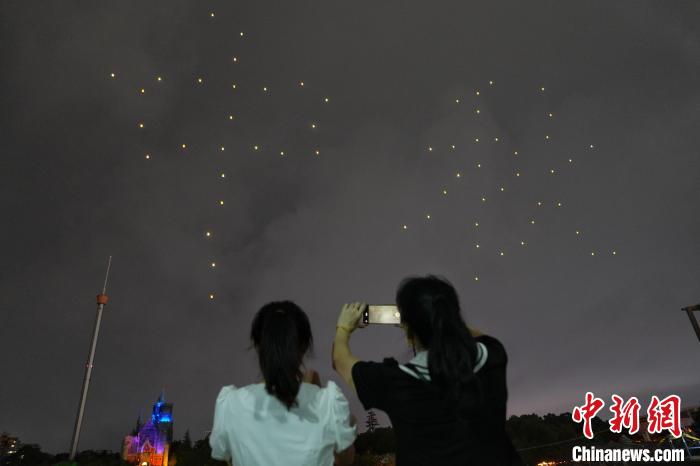 圖為工人家屬拍攝無人機(jī)組成的中秋漢字。中新社記者 楊華峰 攝