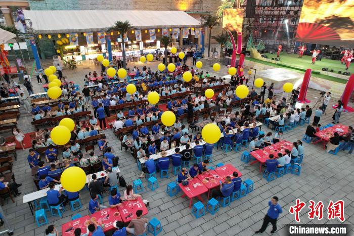圖為百人同席感受中秋合攏宴。(無人機(jī)照片)中新社記者 楊華峰 攝