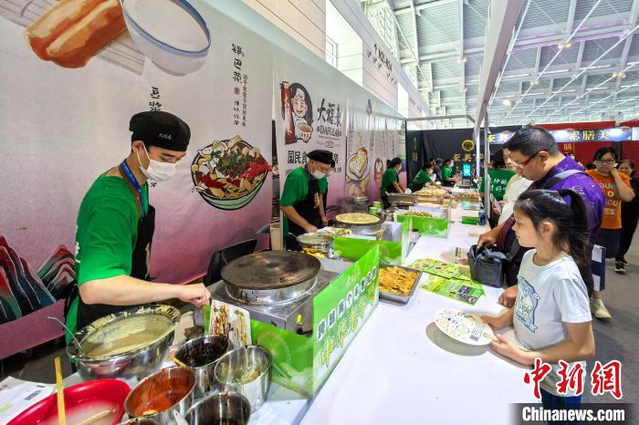 圖為民眾觀看天津煎餅果子制作技藝。中新社記者 佟郁 攝