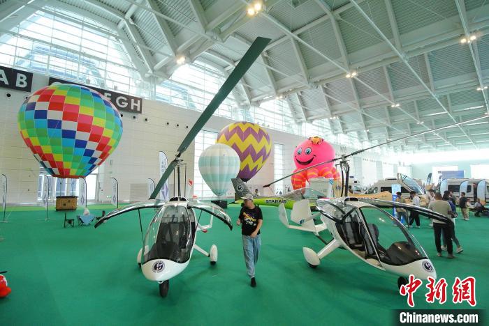 圖為民眾參觀小型直升機(jī)。中新社記者 佟郁 攝