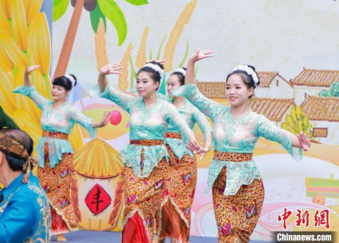 圖為在活動現(xiàn)場的豐收歌會上,舞者表演舞蹈節(jié)目《非遺里的豐收—興隆華僑印尼舞》。王淼 供圖