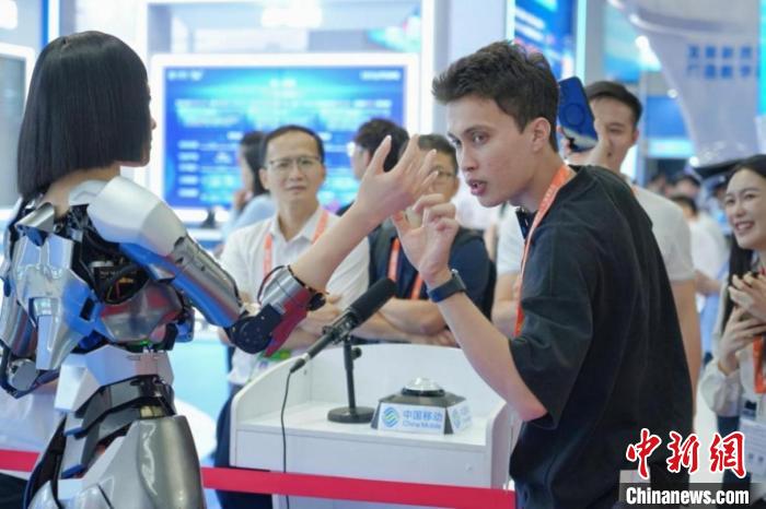 9月24日至28日,第21屆中國—東盟博覽會在廣西南寧舉辦,期間一大批“高精尖”和實用新型的科技創(chuàng)新技術(shù)悉數(shù)亮相。中國—東盟博覽會數(shù)字技術(shù)展全面展示了AI大模型、仿生人形機器人、無人機、裸眼3D等新技術(shù),為觀眾帶來高效率的交互體驗。圖為參觀者與仿生人形機器人互動。申蓓 攝