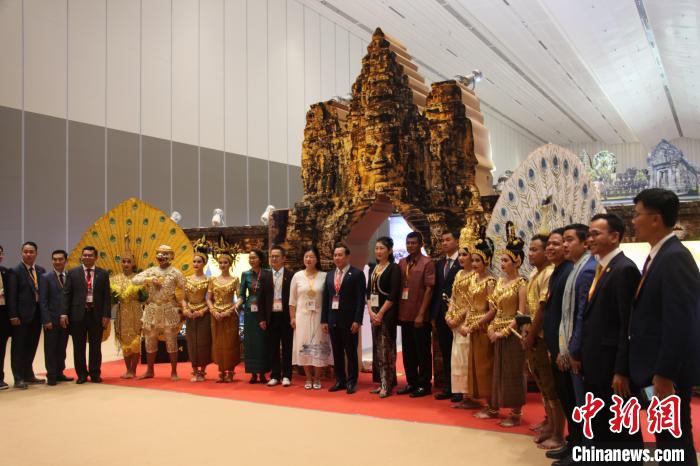 9月26日,第21屆中國(guó)—東盟博覽會(huì)旅游展區(qū)在桂林國(guó)際會(huì)展中心開館。邀請(qǐng)柬埔寨擔(dān)任主賓國(guó),來自境外43個(gè)國(guó)家和地區(qū)的駐華機(jī)構(gòu)和企業(yè)參展。本屆旅游展區(qū)以“加深文旅交融 共建‘一帶一路’”為主題,旨在進(jìn)一步加強(qiáng)與東盟各國(guó)在文化旅游領(lǐng)域的合作,致力于構(gòu)建更高層次的交流平臺(tái),為構(gòu)建中國(guó)—東盟命運(yùn)共同體提供更大助力。圖為嘉賓在主賓國(guó)柬埔寨展館與舞蹈演員合影。周利朔 攝