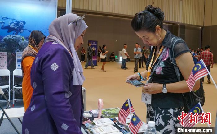 9月26日,第21屆中國(guó)—東盟博覽會(huì)旅游展區(qū)在桂林國(guó)際會(huì)展中心開館。邀請(qǐng)柬埔寨擔(dān)任主賓國(guó),來自境外43個(gè)國(guó)家和地區(qū)的駐華機(jī)構(gòu)和企業(yè)參展。本屆旅游展區(qū)以“加深文旅交融 共建‘一帶一路’”為主題,旨在進(jìn)一步加強(qiáng)與東盟各國(guó)在文化旅游領(lǐng)域的合作,致力于構(gòu)建更高層次的交流平臺(tái),為構(gòu)建中國(guó)—東盟命運(yùn)共同體提供更大助力。圖為專業(yè)買家在馬來西亞展館了解旅游線路產(chǎn)品。蔣豐慧 攝