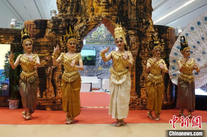 9月26日,第21屆中國(guó)—東盟博覽會(huì)旅游展區(qū)在桂林國(guó)際會(huì)展中心開館。邀請(qǐng)柬埔寨擔(dān)任主賓國(guó),來自境外43個(gè)國(guó)家和地區(qū)的駐華機(jī)構(gòu)和企業(yè)參展。本屆旅游展區(qū)以“加深文旅交融 共建‘一帶一路’”為主題,旨在進(jìn)一步加強(qiáng)與東盟各國(guó)在文化旅游領(lǐng)域的合作,致力于構(gòu)建更高層次的交流平臺(tái),為構(gòu)建中國(guó)—東盟命運(yùn)共同體提供更大助力。圖為主賓國(guó)柬埔寨展館的舞蹈演員表演“仙女舞蹈”。歐惠蘭 攝